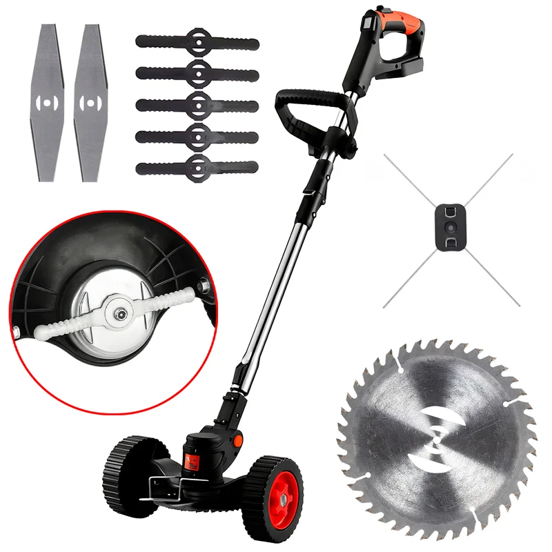 Відсутність кабелю дозволяє працювати в будь-якому місці без потреби в розетках. Регулювання головки двигуна на +/- 90° полегшує різання вздовж вертикальних поверхонь і країв газонів. Металева захисна рамка захищає квіти та огорожу від пошкоджень.